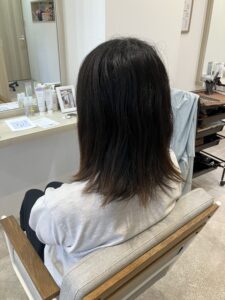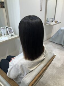 毛先は1年前に他店で縮毛歴があったので保護剤と保護クリームをつけ
