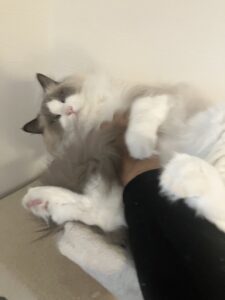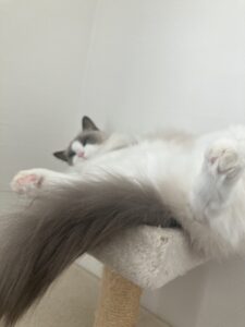 キャットタワーで腹出して寝てたので