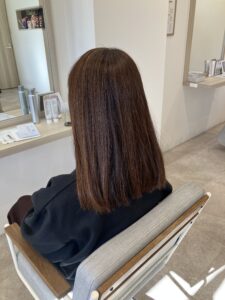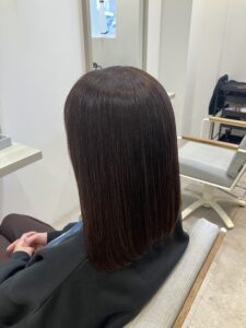 スタッフの岩切さんの髪を使って髪質改善メニューを行いました。